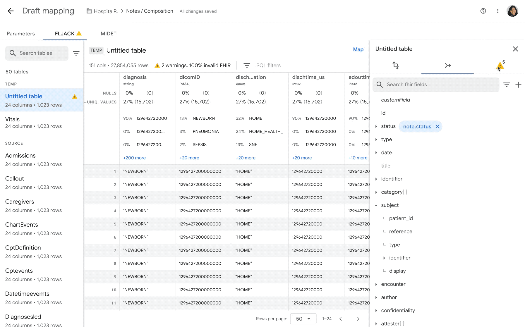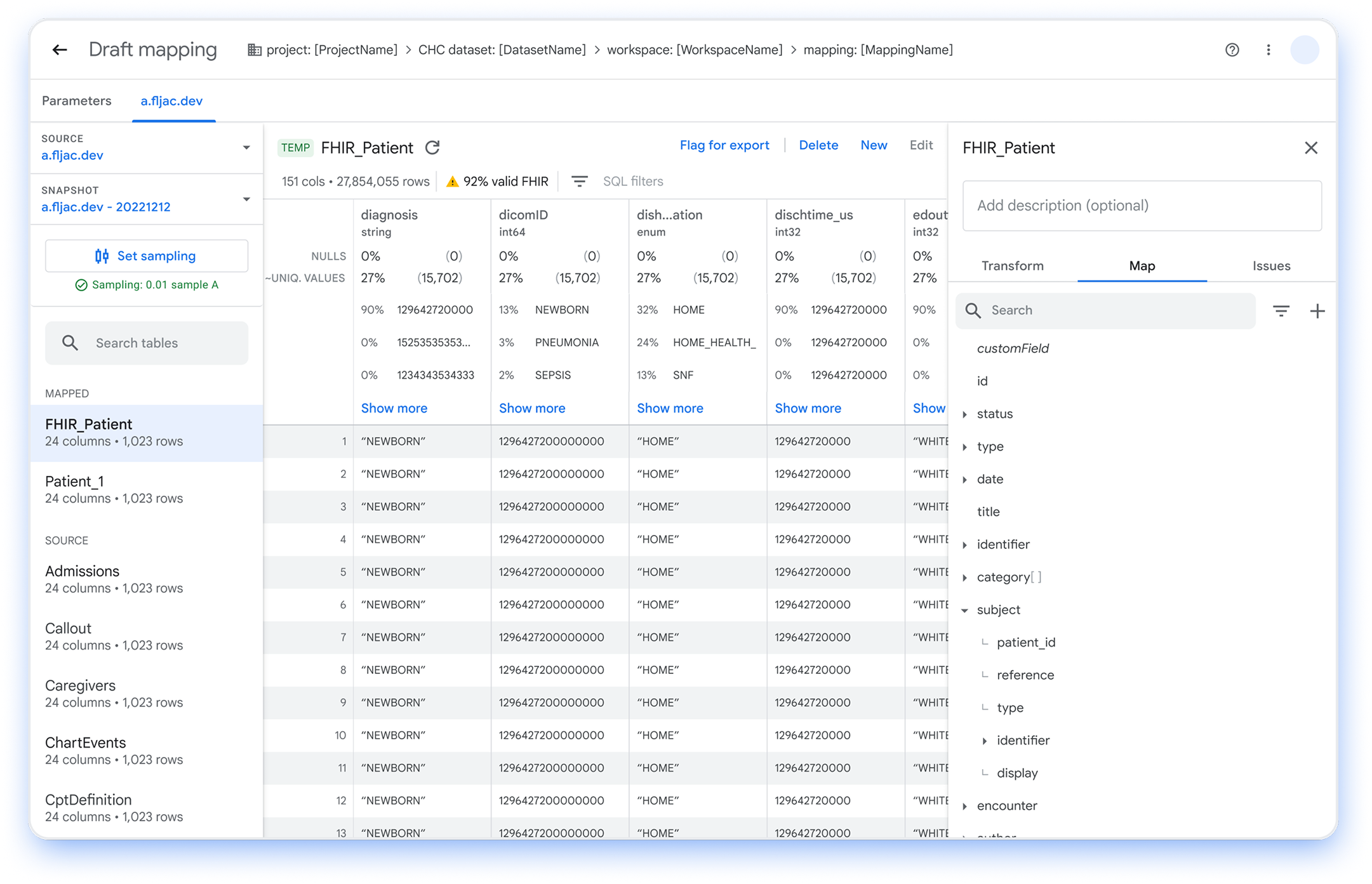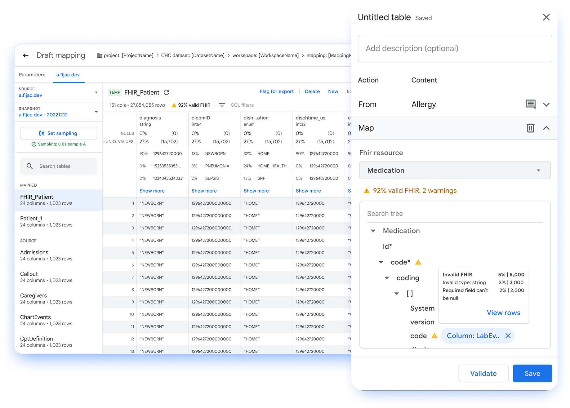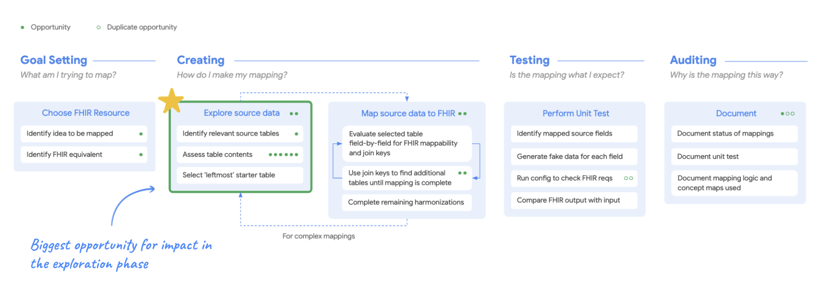 Patient records exist across systems in different formats. Unlocking insights requires transforming data into a consistent standard (FHIR)—called "mapping."